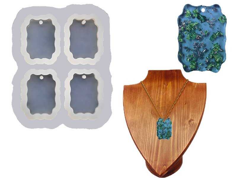 4'lü Tırtıklı Dikdörtgen Kolye Epoksi Reçine Kalıbı KHE578