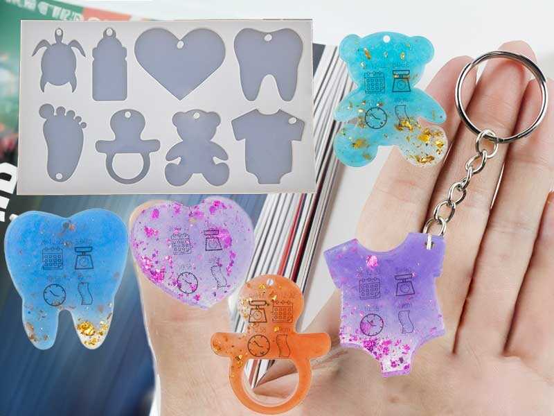 8'li Bebek Objeleri Anahtarlık Epoksi Reçine Kalıbı KHE