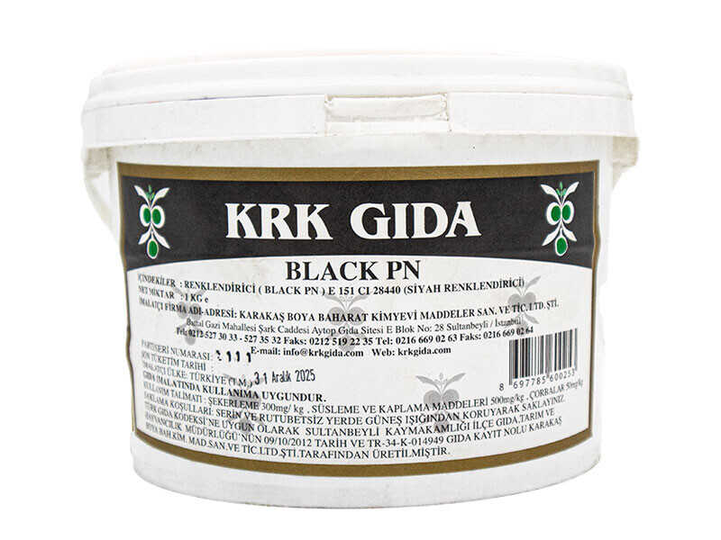 - 1 paket Food Black PN E151 Siyah gıda boyasında 1 kg renklendirici bulunmaktadır.
