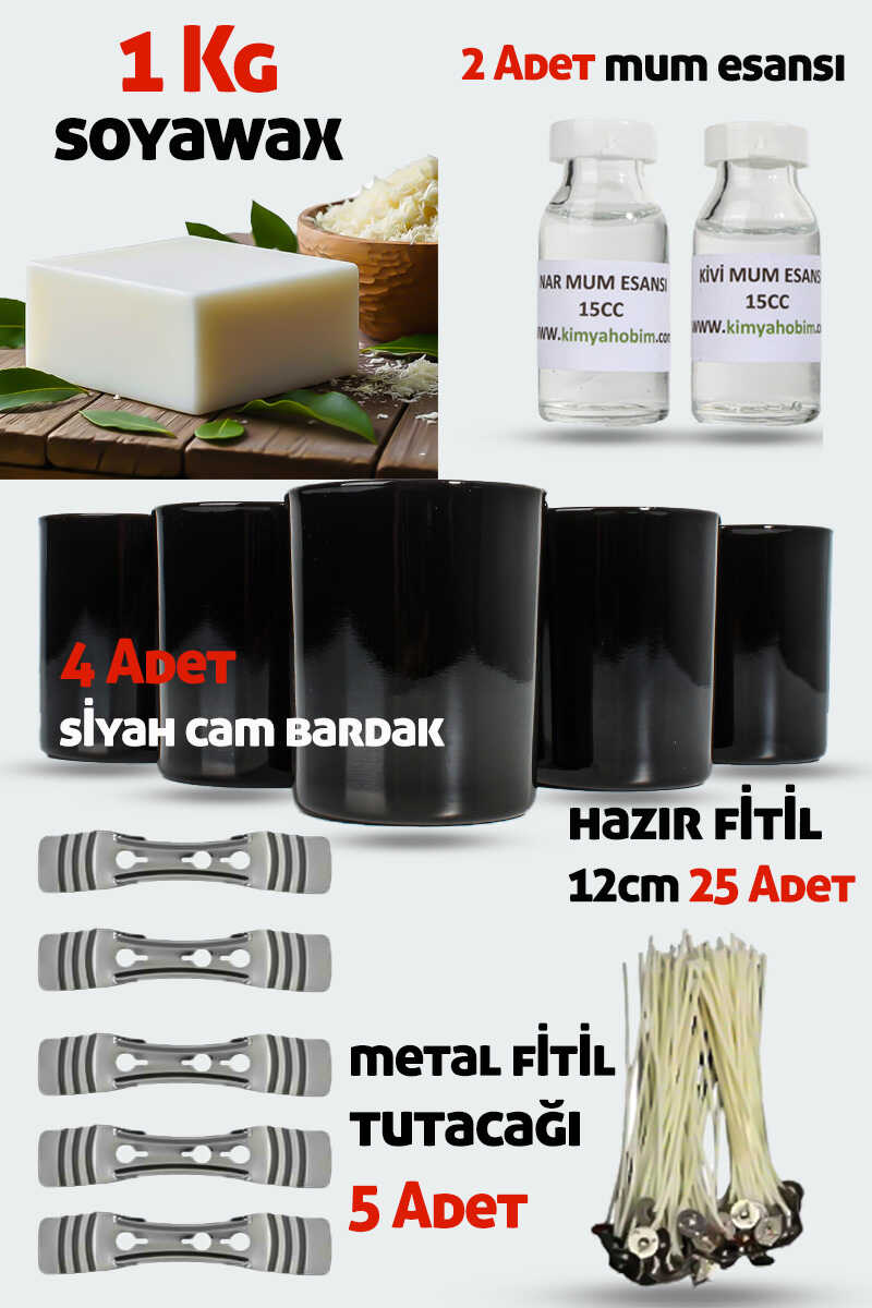 - İstenilen renge göre mum boyaları ve mum esanlarımızdan ekleyebilirsiniz.(Esans oranı %3-%5)